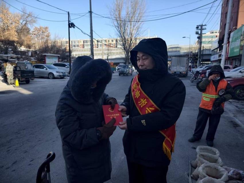 为深入推进《中华人民共和国民法典》学习宣传走深走实,落实戒毒工作社会化延伸与全民普法工作深度融合要求,引导广大群众树立正确的民事权利观念,2026年2月2日,站前司法所和市强戒所的戒毒人民警察组建“法治同行”宣讲队,以“贴近群众、贴近生活、贴近实际”为原则,在辖区广场、社区、商超、公园等人员密集场所,开展系列《中华人民共和国民法典》社会化普法宣传活动,让民法典精神融入群众日常生活。