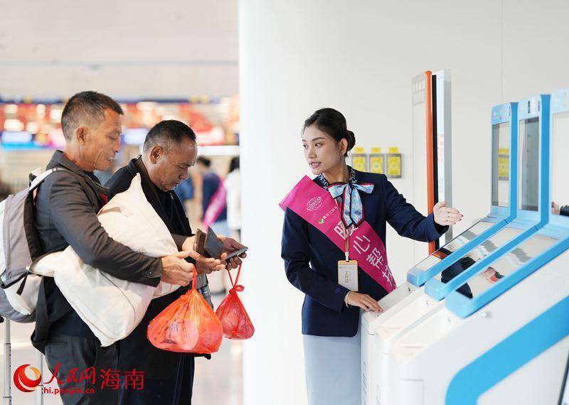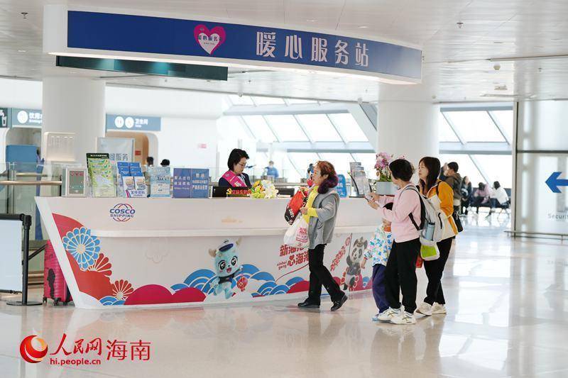 乘客在新海港暖心服务站咨询。人民网记者 符武平摄