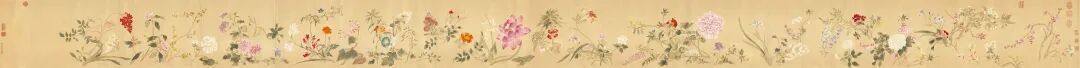 乾隆二十四年,苏州画家钱中钰整了幅“硬核”长卷——《花卉图卷》,5米长的绢本上,二十多种花轮番登场,从春到冬,活脱脱一场“花卉跨年晚会”!