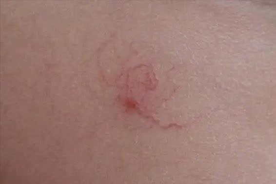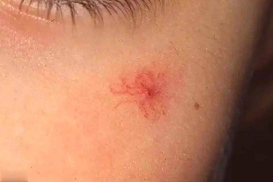 当皮肤上出现类似蜘蛛的痣状物时,可以轻轻按压这些痣,若痣的中心部分变得苍白,而外围的血管则保持红色或紫色,这就可以初步判断为蜘蛛痣。