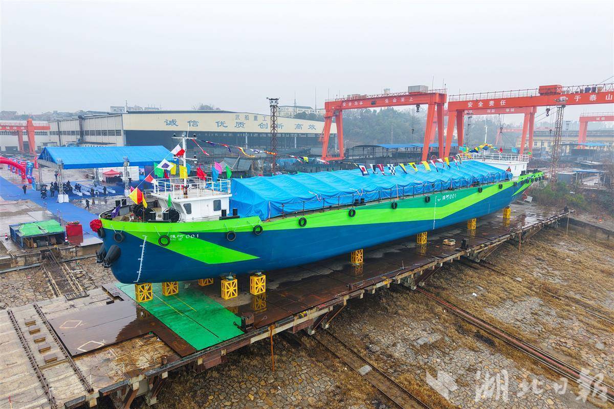 湖北日报讯(记者李源、通讯员周建仁、张星)2月6日,由安徽江淮绿色船舶科学研究院投资研发、中船集团武昌造船建造的甲醇动力新能源船舶“淮河001”号在武汉阳逻港下水。